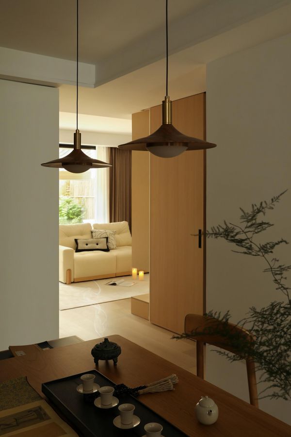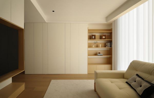 在设计中,我们调整了客厅与卧室的布局,让空间动线更合理;为屋主精心设计了很多不同规格的收纳空间;材质上选用温润的原木,搭配柔和又富有层次感的光源,为居住者提供视觉上的舒适和心灵上的放松。