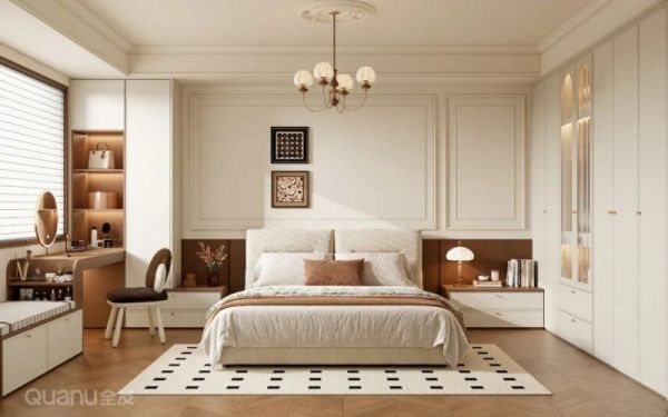 布局建议:床尾通道可预留80cm以上,搭配床尾衣柜或梳妆台。