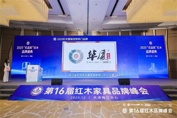 浙江省东阳市华厦家具有限公司(华厦·大不同)凭借深厚积淀与创新突破,一举斩获“2025红木家具十大受欢迎品牌”“2025红木整装定制热门品牌”两项企业殊荣;董事长陈田华、总经理陈莉丹分别荣膺“2025红木家具领军企业家”和“2025红木家具杰出青年企业家”称号。这四项荣誉不仅是对企业三十余载匠心耕耘的褒奖,更是对其引领行业高质量发展的实力见证。