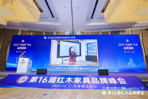 华厦·大不同总经理陈莉丹斩获“2025红木家具杰出青年企业家”的荣誉称号