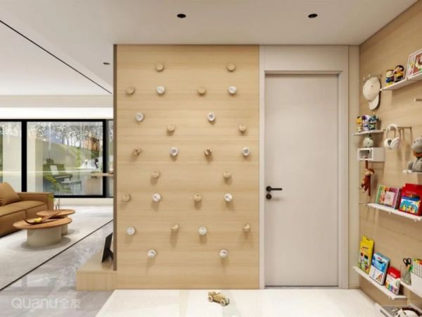 谁说客厅只能躺平?在过道墙面嵌入攀岩岩点,闲置过道立刻变身家庭攀岩角。