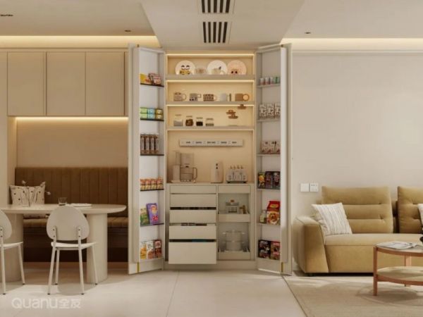 打开柜门,转身就能取用调料和干货,下厨动线直接缩短一半;关上柜门,杂乱瓶罐统统隐身,厨房瞬间清爽整洁。