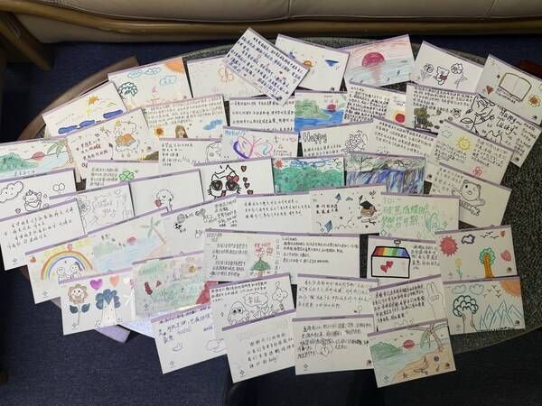 活动视频中,琳琅满目的义卖物资、热火朝天的参与场景、工作人员忙碌的身影交织成动人画面,生动还原了"以义卖传情,用行动助梦"的公益初心。而更让人动容的是,当捐赠物资顺利送达学子手中后,孩子们亲手制作的感谢卡片陆续反馈回来——稚嫩的字迹里满是真诚,"谢谢叔叔阿姨的帮助,我会好好读书""新的文具和球拍我很喜欢,谢谢你们的关心",简单的话语搭配可爱的手绘图案,成为对此次公益行动最珍贵的回应。