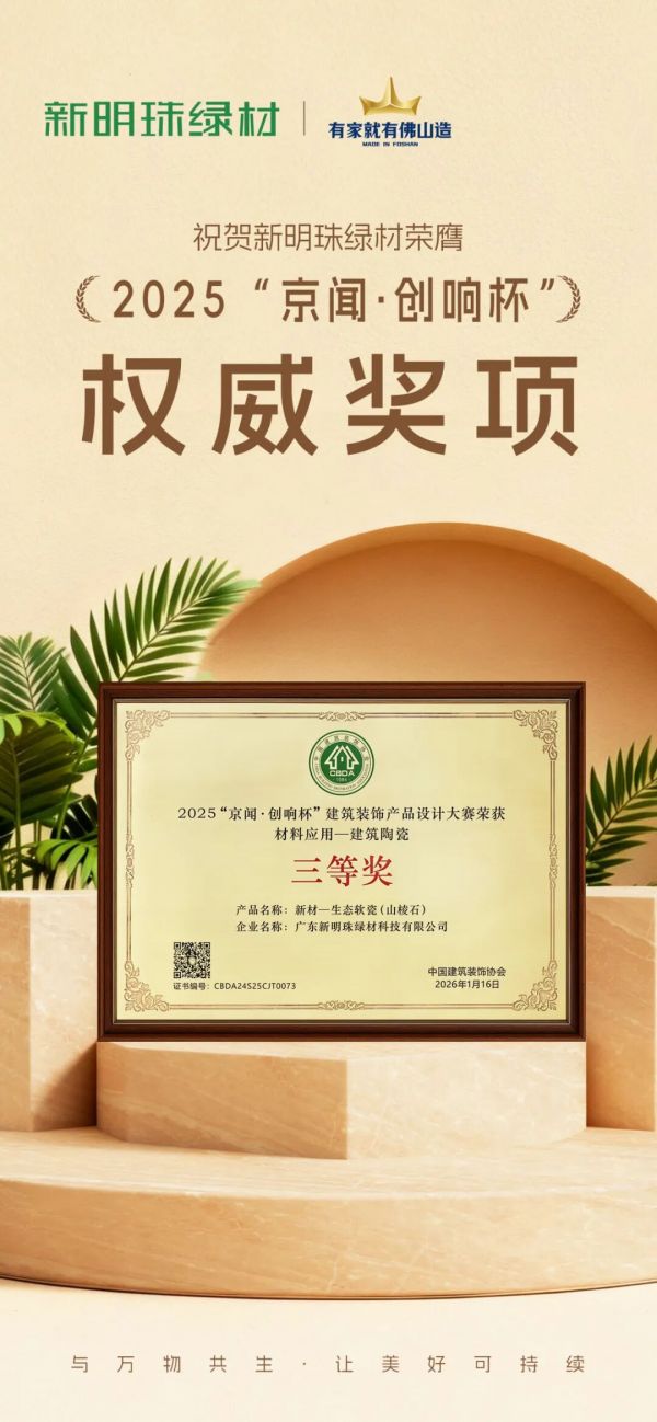 荣誉加冕|新明珠绿材荣获“2025京闻·创响杯”权威奖项