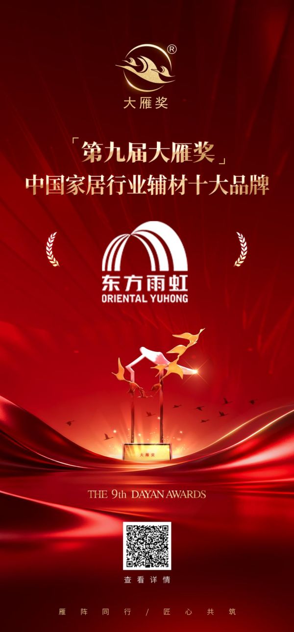 荣耀加冕!东方雨虹斩获第九届大雁奖“中国家居行业辅材十大品牌”奖项