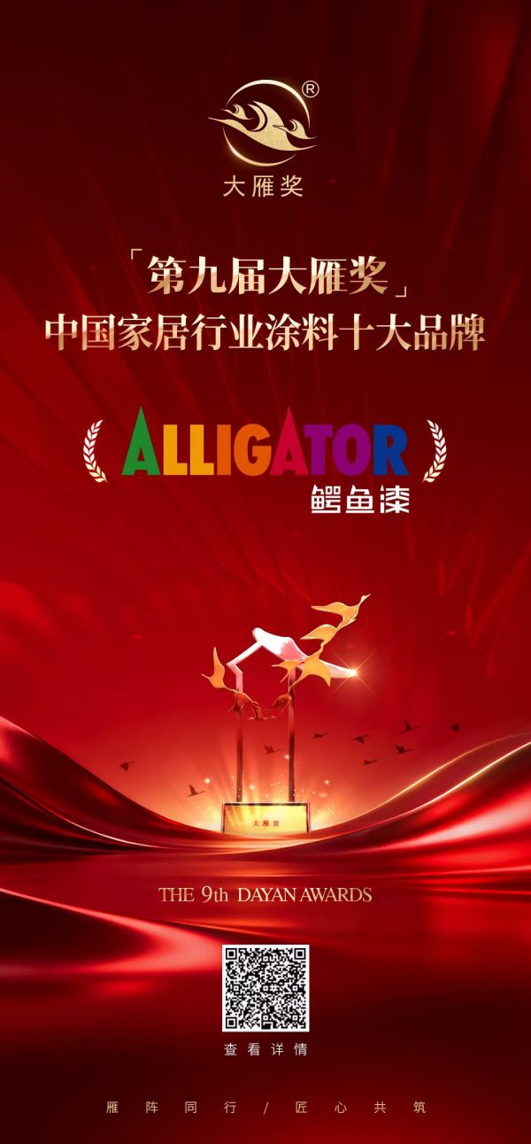 1月30日,「第九届大雁奖」获奖名单于云端发布会正式揭晓。鳄鱼漆凭借其在涂料领域的卓越产品力、领先的品牌影响力与持续的市场引领表现,荣获“第九届大雁奖·中国家居行业涂料十大品牌”这一权威殊荣。