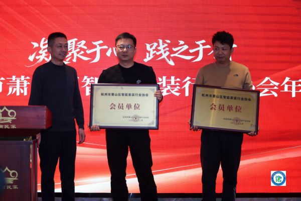 行业的发展,离不开新鲜血液的注入;协会的壮大,离不开会员单位的信任与支持。本次年会上,协会迎来了两名新成员——杭州极东机械和杭州易家丽家居,这也标志着杭州市萧山区智能家装行业协会的组织力量进一步壮大,产业生态更加完善。