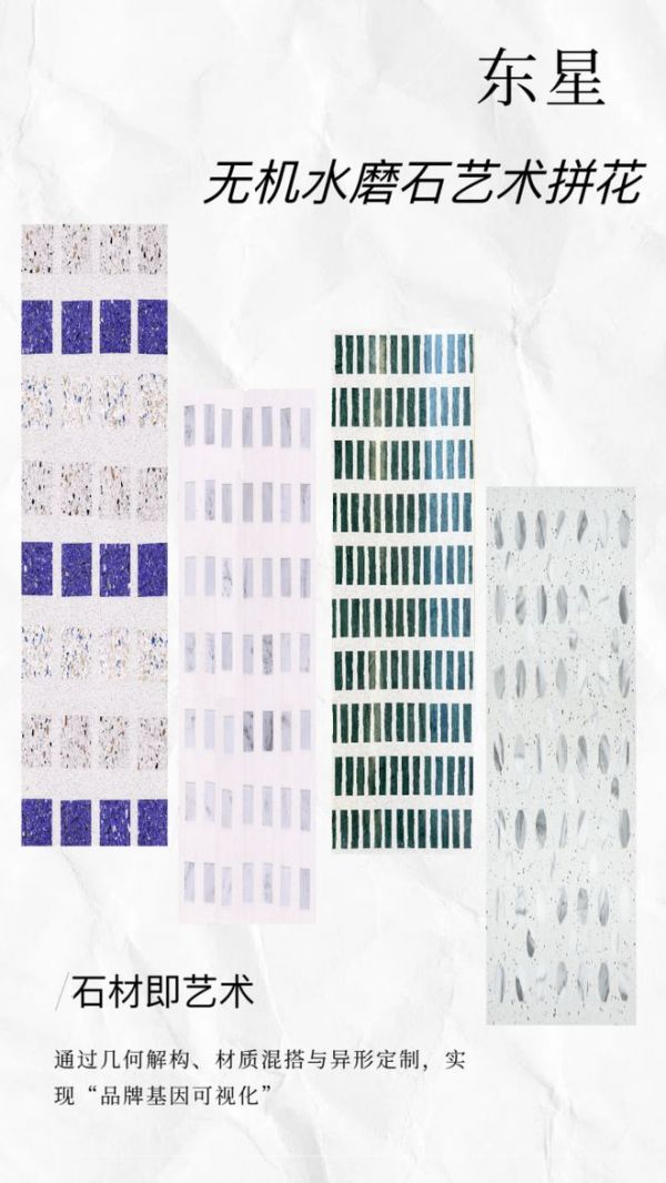 材质无界:从奢石的珍稀天成到无机水磨石的环保创新,从余料回收的低碳实践到新品的色彩突破,东星以材质为媒,实现自然与科技、传统与现代的深度衔接,践行着“绿色发展”的产业担当。
