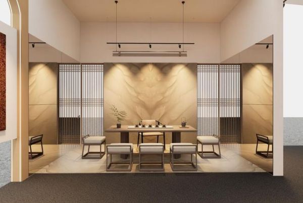 东星奢石与白石:本次展会奢石系列以新中式茶室为载体,甄选全球珍稀矿脉,每一块都尽藏石材原生的卓然品质与独特气韵。其中,意大利蓝砂岩仍以优雅之姿亮相,为新中式茶室空间注入浑然天成的奢石质感;白石系列温润通透、如雪似玉,适配多元风格,尽显高端空间雅致格调,诠释东星自然美学。