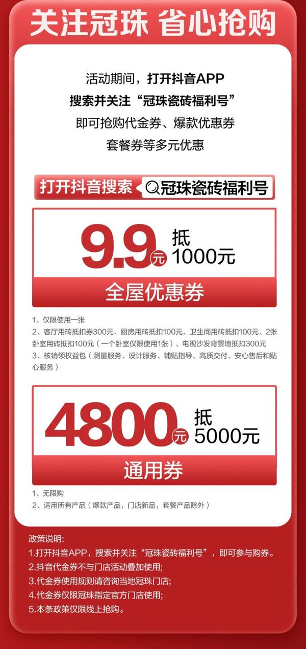 冠珠质造 大美筑家 | 15城巡游直播、宝藏单品低至36元/片!冠珠瓷砖315品质服务月邀您一块大美筑家