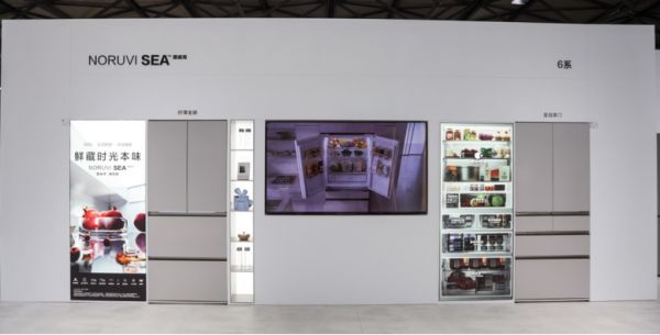 冰箱展区以“生态怡居,器纳自然”为主题,重磅展出的新品挪威海600系列汲取海洋生态灵感,专为海鲜储存优化,以独立制冷循环与超低温速冷技术营造接近深海的储鲜环境,600L大容量搭配50%超大冷冻空间,搭载纳诺怡™X科技,牢牢锁住食材原鲜。