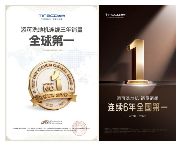 这套硬核的专家逻辑,最终在市场上转化为压倒性的领先优势。根据权威数据,添可洗地机已达成连续六年销量销额全国·第一*,并高居连续三年销量全球第一*的王座。