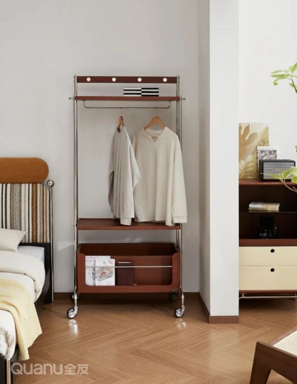 它可随意移动到床头位置,实现挂衣置物一体,不用时还能挪到卧室其他区域,灵活适配各种使用场景。