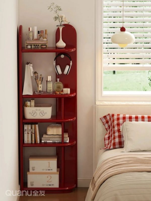 如果床头空间特别狭小,又想保持空间的通透感,那么开放式置物架是一个不错的选择。它既能满足床边收纳需求,又能为墙面增添丰富的层次感,让床边角落既实用又显精致。