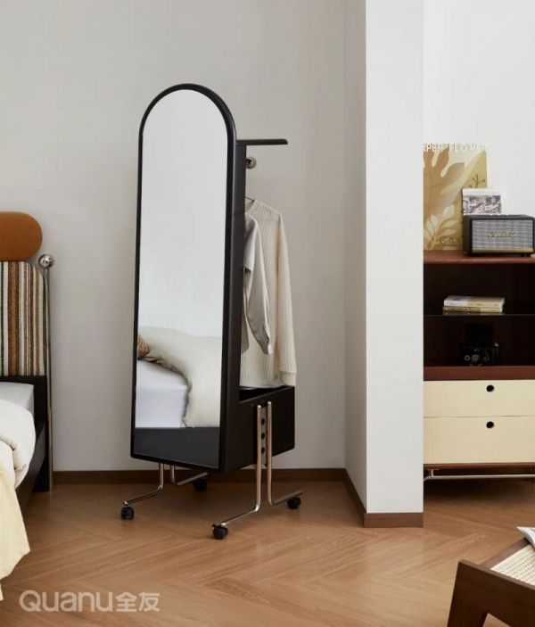 此外,也可以选择带穿衣镜的款式,正面可对着镜子整理穿搭,背面能悬挂衣物,实用性拉满。