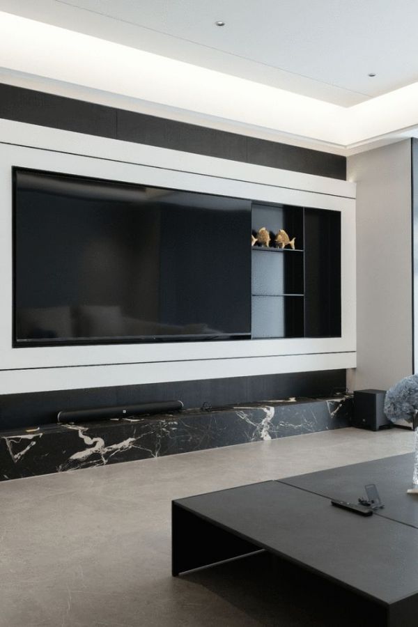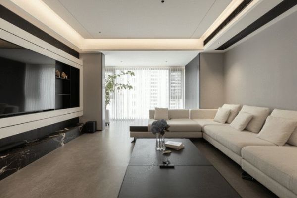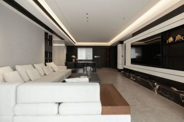 步入大客厅,其电视背景墙,是“时光”概念的又一次延伸。摒弃了传统的落地式布局,采用悬浮式结构,通过穿插手法的叠加,让墙面呈现出丰富的层次感与灵动的视觉节奏。