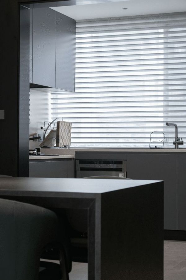 而被移动的生活阳台,则巧妙地隐藏于厨房背后,功能独立却不打扰主要生活区,让整个公区显得干净利落,堪称一次完美的“空间置换术”。