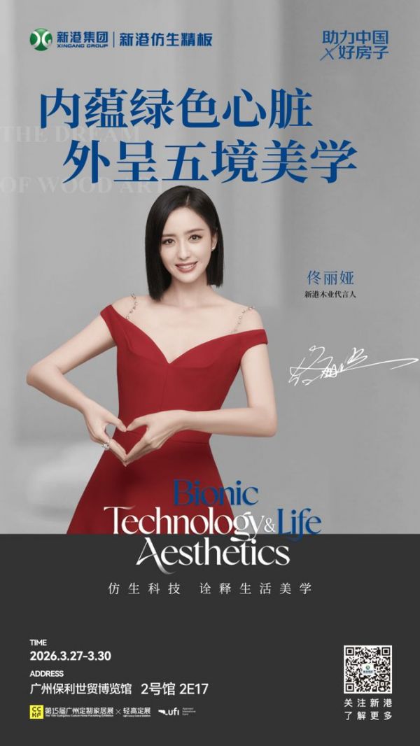 2026年3月,第十五届广州定制家居展启幕,新港集团于2号馆2E17重磅首发“五境”系列花色精板。