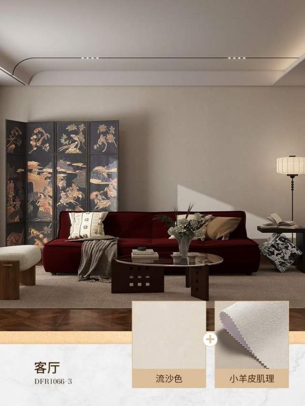 细腻如真皮的哑光质感,衬着温柔浅棕调,自带轻奢高级感,适配新中/侘寂/复古风,让客厅在沉稳中透出松弛贵气。