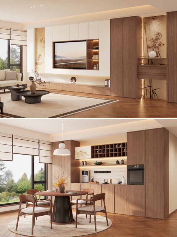 承袭东方底蕴,气质温润端庄。软装多选用木质细腿家具,轻盈雅致。整体色彩沉稳柔和,营造静谧氛围。软装与硬装处处藏着东方巧思,端庄大气,自带岁月静好的气质。