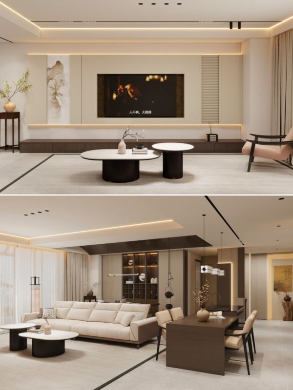 像一幅宋代山水画,只留风骨。强调留白和通透感,让光影自然洒落。