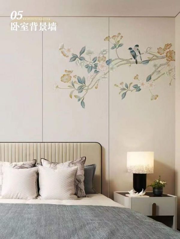卧室追求松弛与安宁,低饱和色调、柔和纹样的壁画设计,让空间更显静谧温柔;或清雅新中,或现代艺术,不刺眼、不喧闹,让每一次休憩都能卸下疲惫、倍感安心。
