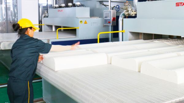 生产环节,中胶永生将医用领域的严苛标准全面融入床垫生产。公司500多亩的生产基地,配备12条天然乳胶寝具生产线(另有医用乳胶手术手套和避孕套5条自动化生产线),采用五次非循环脱氨工艺,让产品保留淡淡天然乳胶清香。每一道生产工序都实现标准化作业,既确保低蛋白技术的稳定落地,又保障天然乳胶床垫的弹性与耐用性。