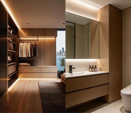 针对卫浴空间,推出防潮防蚁——浴柜专用板。浴室水汽无孔不入,柜体受潮易吸水膨胀、霉变生菌,更是白蚁侵蚀的温床。这款板材采用环保防水胶粘剂与九级防白蚁处理工艺,长期潮湿不鼓包、不生虫。