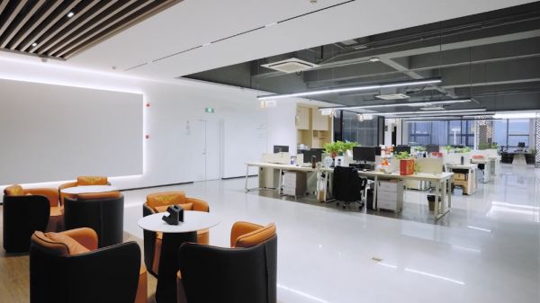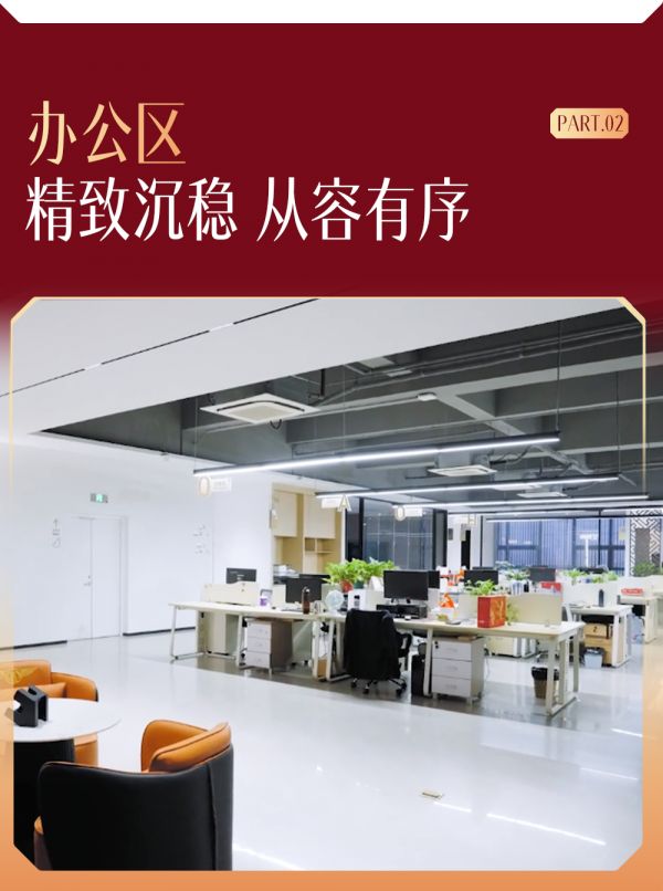 办公区选用冠珠微光石流沙墨灰,营造沉稳专业的工作氛围。低饱和的高级灰色调,传递出严谨细致、专业高效的办公格调。产品表面微光若隐若现,纹理连贯流畅,有效规避强光反射带来的视觉疲惫,精准契合现代高端办公空间的核心需求。