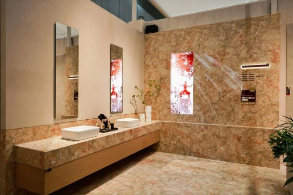 更重要的是,华韵系列不是孤立存在的单品,而是能够进入墙面、地面、台面、家具定制等多元界面的系统化产品。展会现场所呈现的多种大规格产品和组合应用方式,也在传递一个清晰信号:华韵的产品价值,在于能够支撑空间一体化设计,而不是只完成局部装饰。