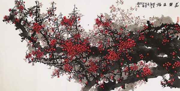 花开五福:90cm×180cm