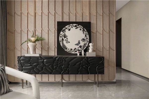 阳光在沙滩和密林间抚过,微风吹拂过大地,聆听天籁回响,代表一种远遁凡世喧嚣般的美好,美好到生命的每一瞬间。灵感自此连接,依于此,一种质朴的自然主义倾向在空间的每个角落蔓延开来。那些提取于自然的纹样,演绎成空间中质朴肌理的存在,空气里飘散的是朴实温润、内敛淡然,让人寻回生活中那份诗性的缄默。