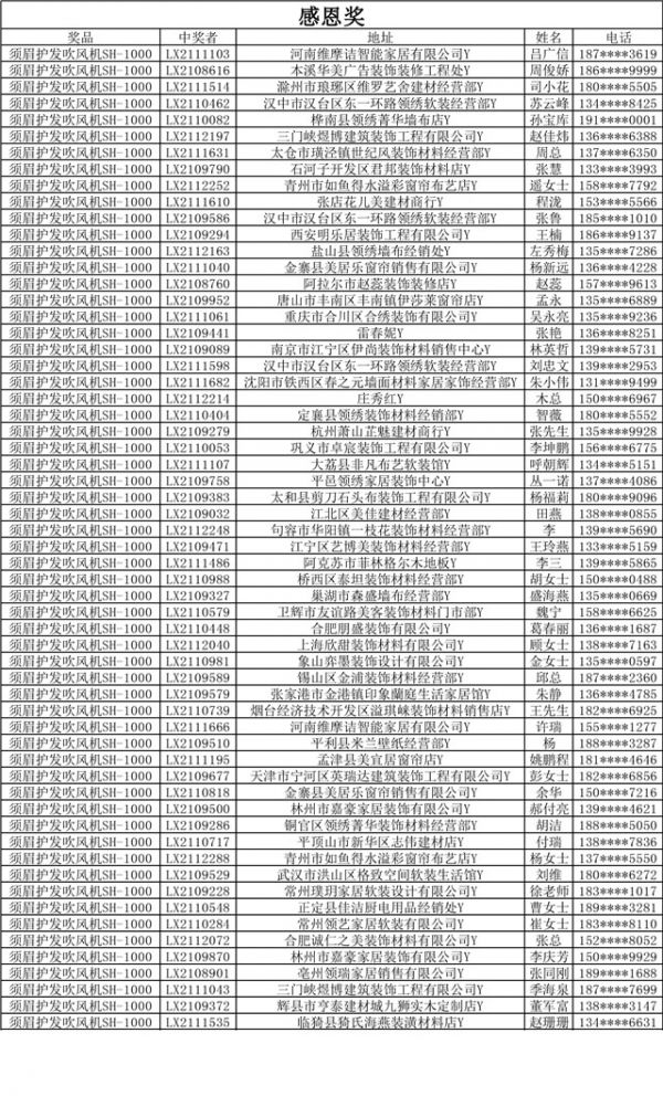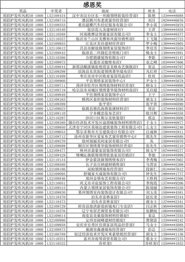 【领绣】出来了 中奖名单公示 恭喜所有获奖业主!315活动只剩半个月了 抓紧