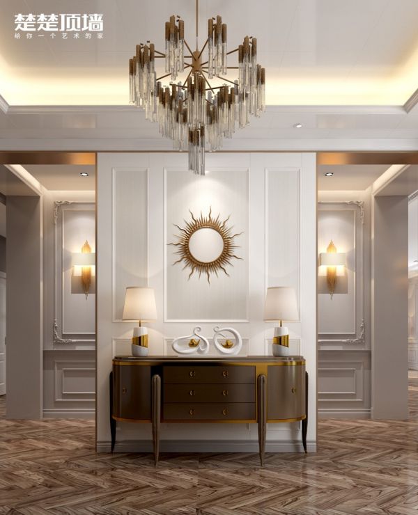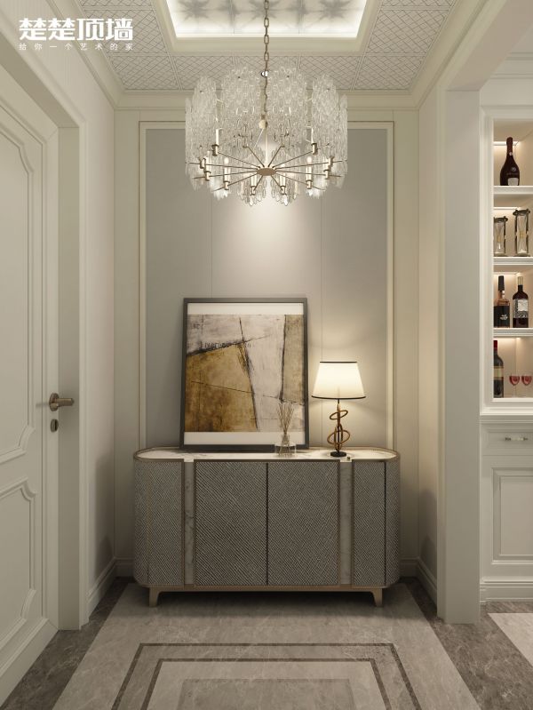 步入家中,就看见造型精美的欧式玄关设计,尽显浪漫又奢侈的气质。
