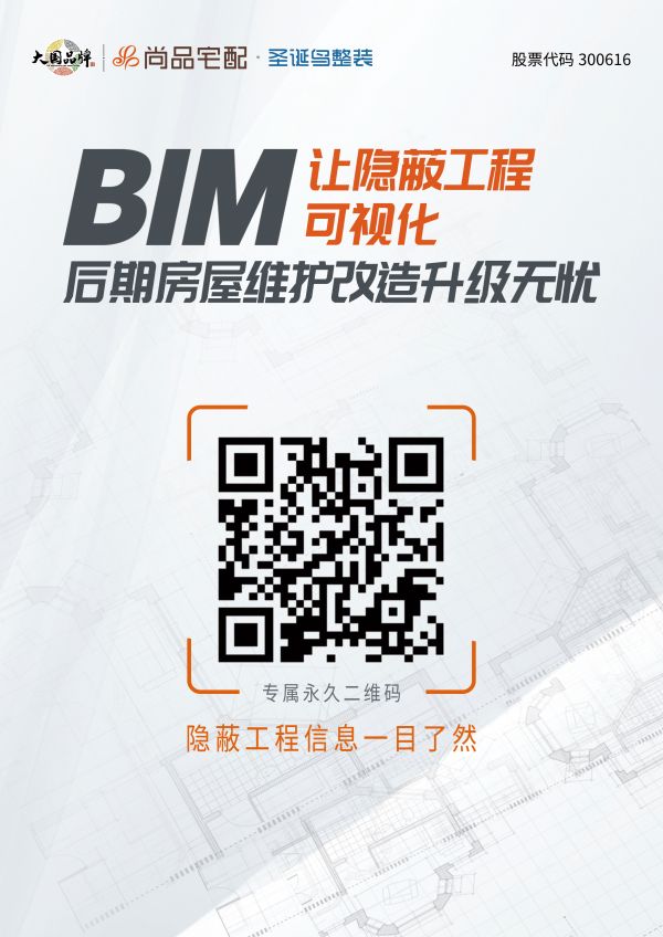 在施工结束之后,尚品宅配·圣诞鸟整装会生成一个客户的专属永久二维码,这个二维码就像是客户家装修的名片一样,将以往装修的隐蔽工程信息全部涵盖在内,如果后续客户家里有需要做维护改造升级的地方,只要打开这个码,就可以查看以往的装修情况。