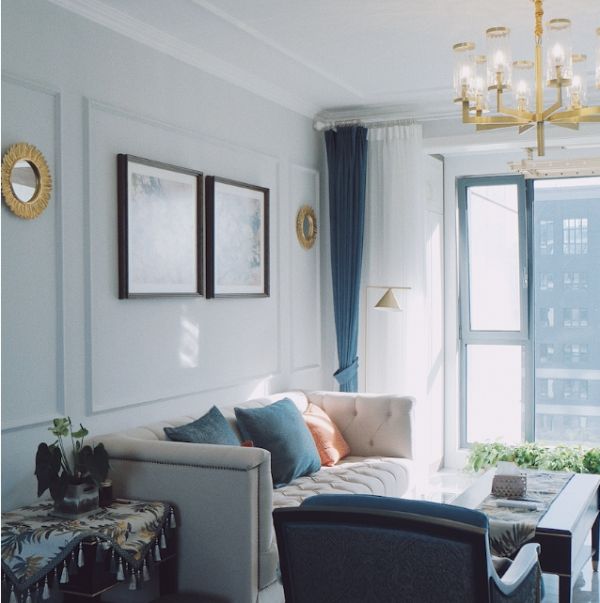 墙上是有做一些简单边框装饰,这也是美式风格的一个特点。