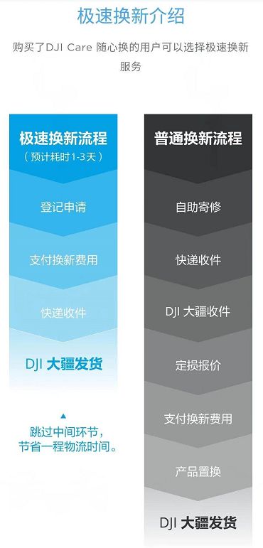 据悉,当大疆产品出现保障范围内的机损情况时,可进入官网维修服务页面申请“极速换新”或“自助寄修”,大疆分析飞行日志数据后,如果是无人机质量引起的炸机,在激活的有效期内,甚至可以免费换新机,真的是十分人性化的售后服务了。