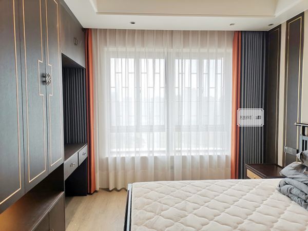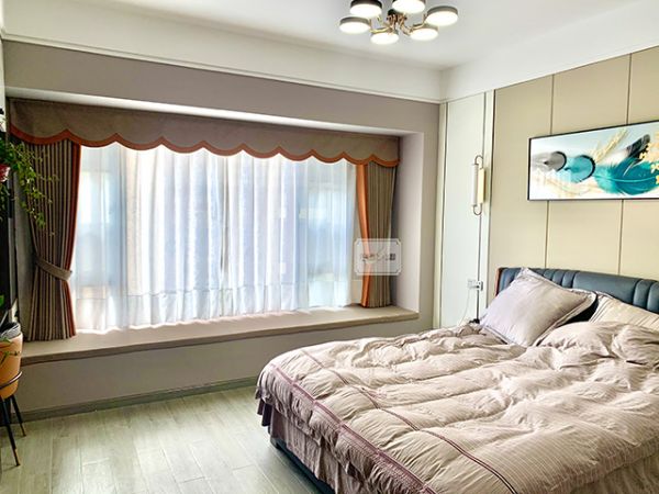 因此,窗帘最好分两层,外层选用透光的窗纱,内层用半透光或不透光的面料。这样,在清晨、傍晚,只用外层窗纱,使整个卧室显得柔和舒适,睡眠时落下遮光窗帘,又可使人在静谧的环境中得到充分的休息。