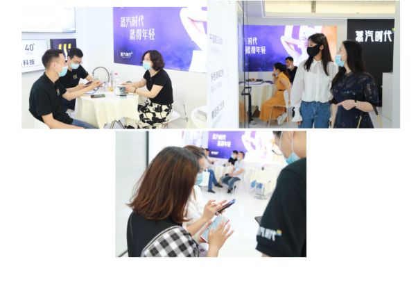 此次展会上,蒸汽时代展厅以简约高端为设计主调,展会一开始就吸引了大量人群前来观展。不同年龄层的客户,70后、80后、90后,甚至00后都对蒸汽时代的展厅和产品,产生了强烈的好奇与兴趣,不时驻足欣赏和体验。蒸汽时代的工作人员则以专业的水准、热情的服务,接待着每一位来访客户。