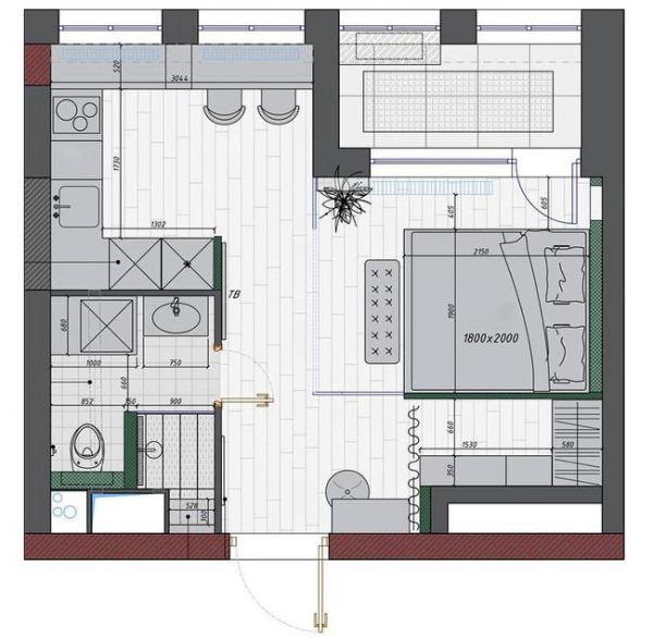 本期案例的客户是一对已婚夫妇,夫妻俩买了一套33㎡(套内面积)的公寓。夫妻俩工作很多,并且经常出差,会经常在家做饭,但是基本上没有客人需要接待。对于夫妻俩来说,室内的刚需是一个大厨房和一个宽敞明亮的卧室。夫妻俩找到设计师,希望设计师能在33㎡的空间中,创造一个符合他们生活习惯的舒适空间。经过设计师和业主仔细沟通后,决定舍弃客厅,让生活空间更舒适。