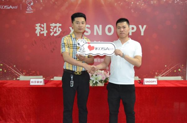 2021年6月25日,科莎家纺与SNOOPY(史努比)家纺中国区总代理在江苏南通举行战略合作签约仪式,双方就家纺产品联合、IP打造、营销推广等方向达成战略合作。未来,双方将基于相互良好的信任关系,积极推进家纺产品内容化的各项合作,推动双方业务发展,实现资源共享、优势互补,打造知名家纺品牌与国际知名IP的合作典范。