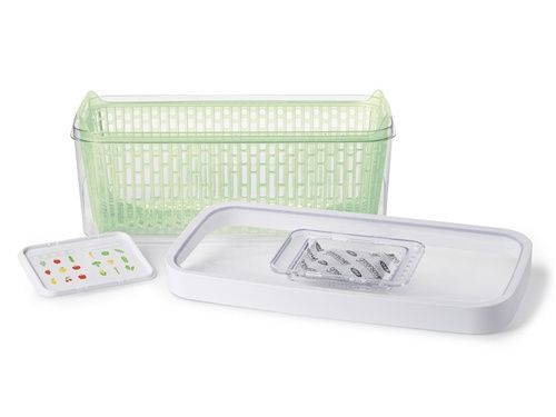 与普通保鲜盒不同,OXO奥秀活性炭果蔬保鲜盒有内外两层结构,内层沥水篮与保鲜盒外壁之间有一定空隙,可以保证适当的空气流通,防止果蔬腐烂。而且滤水篮还能拿出作为洗菜篮使用,非常方便。