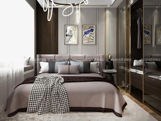 卧室的设计要有足够隐私度,木纹元素的设计,让整个卧室空间呈现出层次感,以温暖的灯光搭配营造温馨的氛围,打造富有韵味的家居生活。