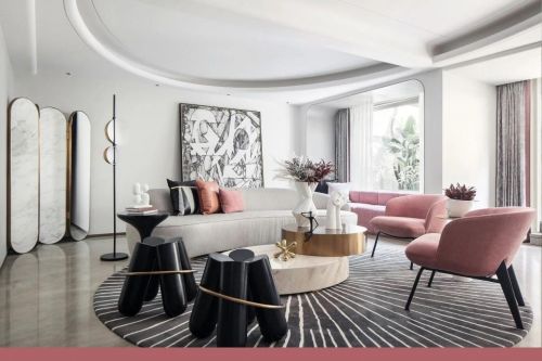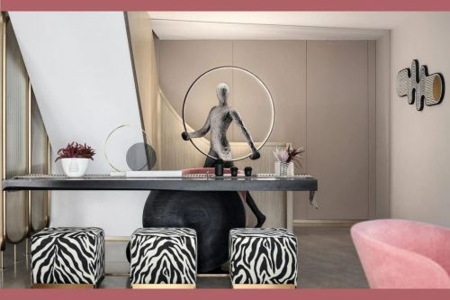 软绵、羞涩的糖果粉色,像是情窦初开的少女遇到了心动的人那份悸动和甜蜜...深浅不一的粉色铺叙空间的层次,通过强烈的视觉冲击力,激发空间的曼妙。同时,设计师调入了黑、白、金合奏共鸣,丰富空间的情感体验,营造清爽而浪漫的现代美学。