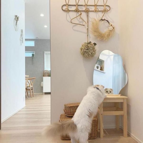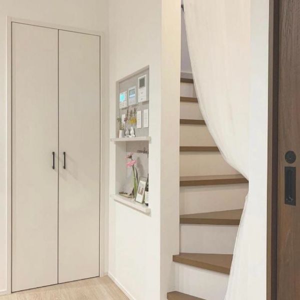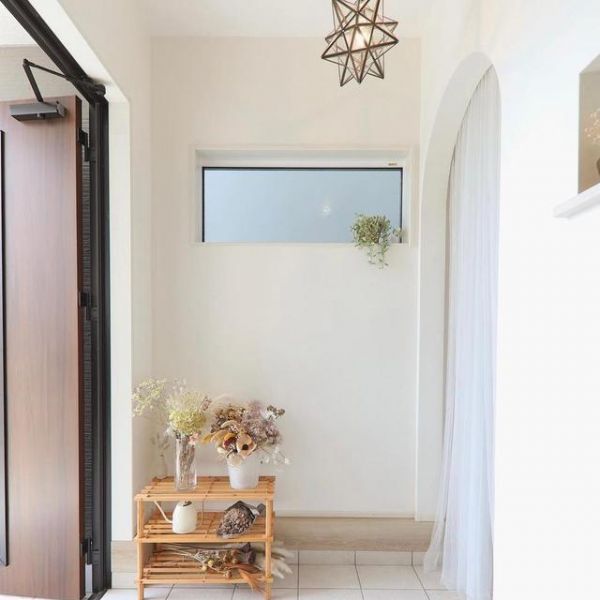 她家,入门即玄关的设计,在日本家庭中极为常见。空间虽然不是很大,但是却实用至极。土间的设计,更是明智之举。不仅可以用来存放宝宝的户外用品,还可以存放家中常用的工具、一家人的鞋子、衣服等物品。纱帘的修饰,让这个区域看上去更加精致。