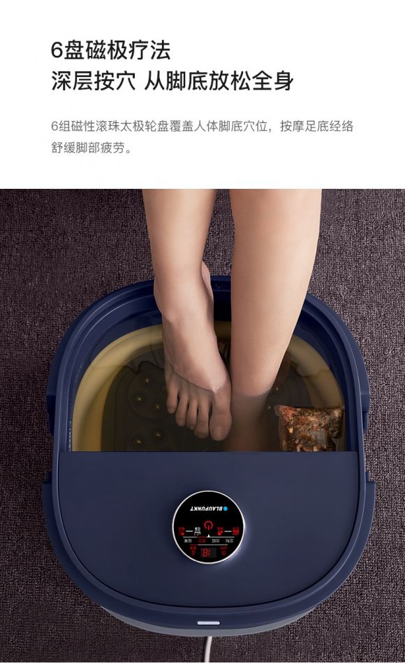 蓝宝足浴盆,采用了仿真人揉捏手法,能覆盖足部大部分穴位,进行深层次按摩,起到真正的足疗效果