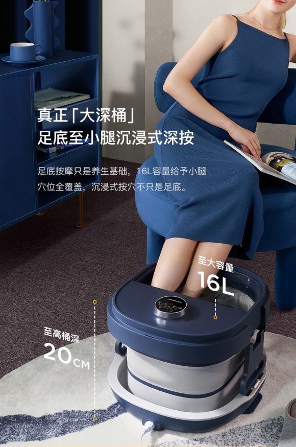 蓝宝这款足浴盆,至高桶深20CM,至大容量16L,可满足沉浸式的泡脚体验