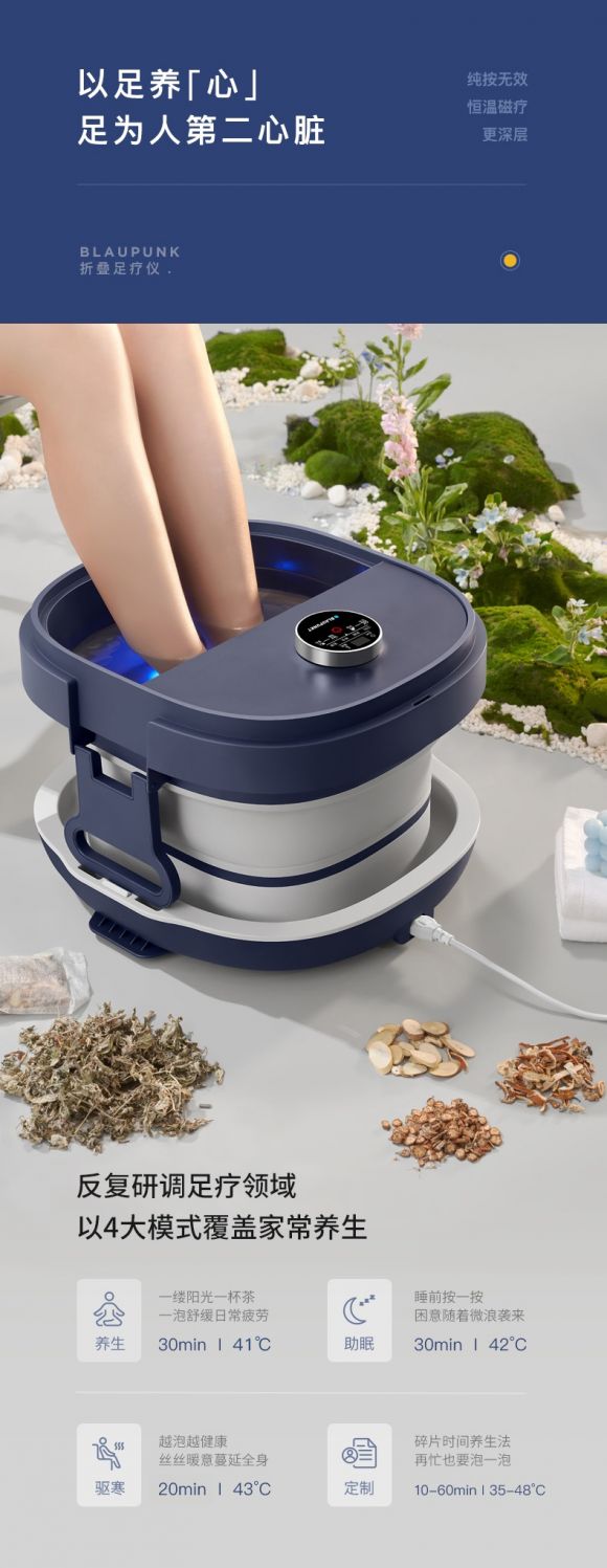 你是否也买过『按摩力度不到位』“挠痒痒式”的足浴盆,买到合适的足浴盆,却又特别【占地方】——为满足广大消费群体的需求,蓝宝2021年9月22日推出这款蓝宝可折叠足浴盆