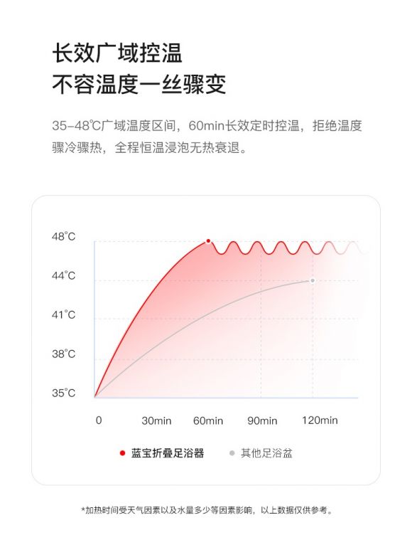 常规的泡脚都会有个问题,水温越来越低,舒适度不断减弱,保持合适的水温,对泡脚体验影响很大,蓝宝足浴盆采用长效定时控温,给用户更优质的体验。