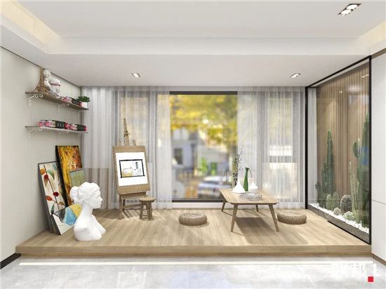 一个人的时候,可以躺在木质地台处,带上耳机,或是翻阅杂志,还能静心绘画,两个人的时候,可以沐浴在阳光下喝茶闲谈,很是惬意。